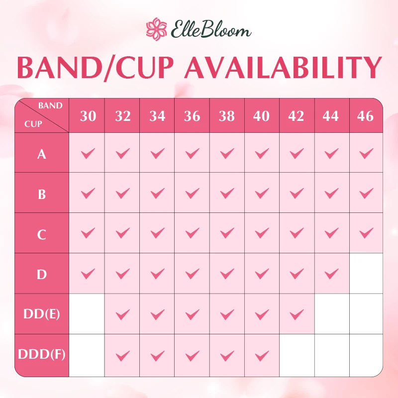 ElleBloom features widened straps, under band, sideband and 5D cups with built-in lifting mesh, providing all-around support. Say goodbye to sagging and enjoy a flattering fit.